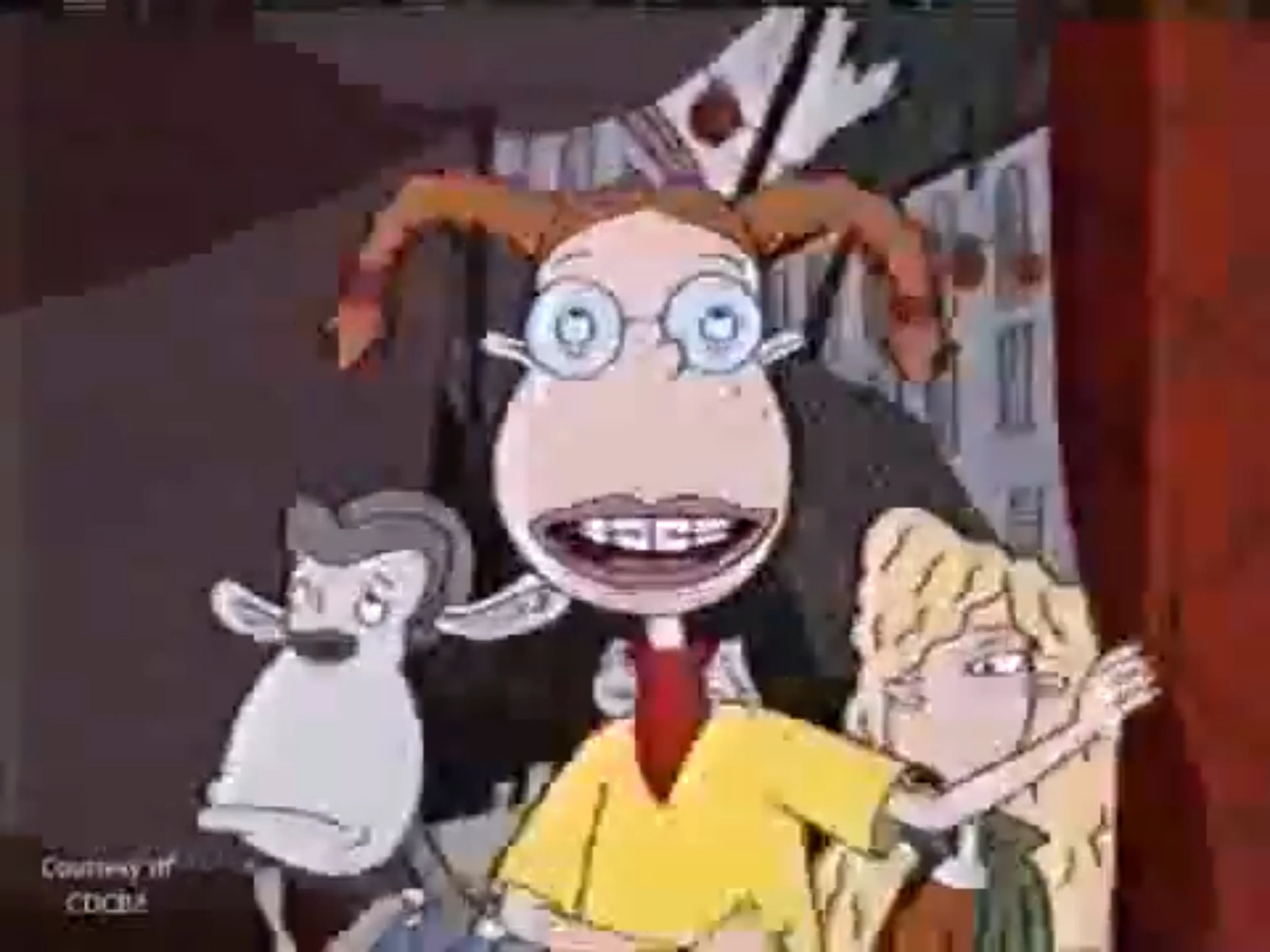 - Elizabeth "Eliza" Thornberry (Lacey Chabert) is the main character, who unknown to most gained the ability to speak with animals after an encounter with an african shaman (as shown in the episode "Gift of Gab"). Eliza is portrayed as a geek by her extensive zoological knowledge and her glasses and braces. She has freckles and long red-orange hair that is usually worn in pigtails like Pippi Longstocking, and occasionally a ponytail. She also has a companion-monkey (chimpanzee) like Pippi Longstocking; but instead of superhuman strength, Eliza has the "super-power" of being able to talk to animals; meanwhile the name "Eliza" invariably derives from the name "Eliza Dolittle," from the film "My Fair Lady" and Doctor Dolittle, due her ability to talk to animals. She almost always wears a yellow dress, though later in the series she sports other clothes. Eliza suffered a serious attack of appendicitis while rock climbing in the Australian outback. Eliza is 12 in the series, being four years younger than Debbie as stated in "Gold Fever".