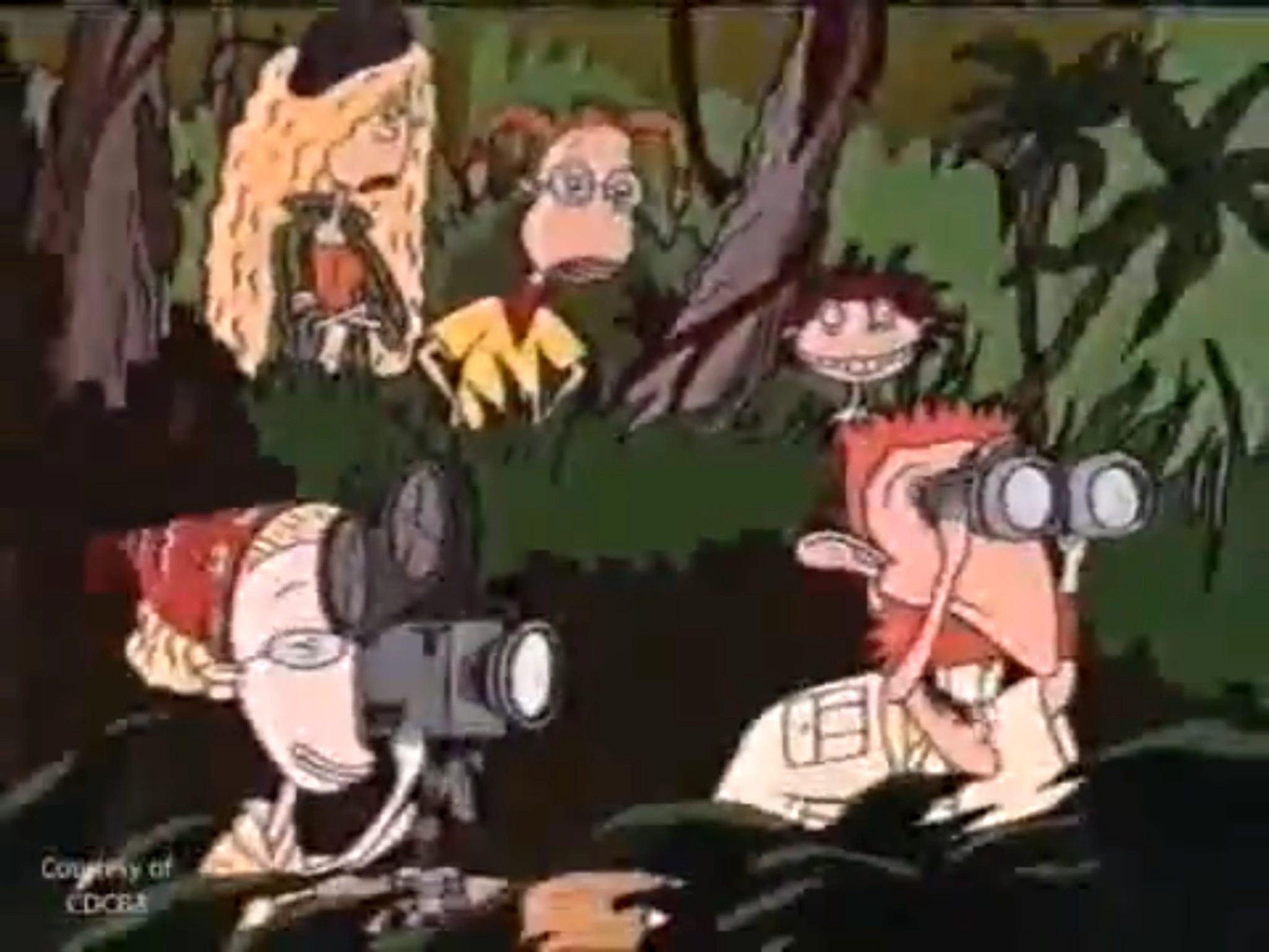 The Commvee (an abbreviation of "communications vehicle") is a two-story mobile home; the main door leads up a flight of stairs to a main floor with the driver (on the right side, due to the family being American except Nigel) and passenger seat in the front, followed by a twin sized bed, table for eating at on the west side of the car, a kitchen on the eastern side, and a bathroom in the back which also serves as a dark-room for editing film. There is a "basement/1st floor" that contains one room with a big bed for Nigel and Marianne, a room with a two twin sized beds (for Debbie and Eliza) and two hammocks for Donnie and Darwin. There is also a small box near the floor of the "main story" that contains various switches which can inflate a raft for crossing rivers and the ocean to a "lock-down" mode in which iron plates cover the windows (as seen in Thornberry Island) for typhoons; there are other switches that can put the car into a submarine mode, or inflate a bag on top of the car for falling objects or rising to the surface of the ocean. Near the 'switch box' there is a hatch (as seen in Rugrats Go Wild) that gives access to a mini-sub.The Commvee also features the usual conveniences found in a motorhome, including air-conditioning and a stereo system with a cassette tape player. On the roof there is a satellite that barely ever gets reception, but is used to upload footage to the foundation. On the outside there are many compartments, supposedly for carrying equipment and other smaller vehicles such as the 'mini-comm' for short-range transport or picking up passengers and returning them to camp,the submarine for deep sea expedition (the bath-o-sphere), and the 'Congo-com.'